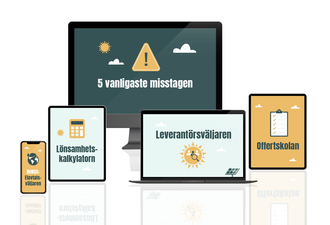 Guiden innehåller dessutom ytterligare 5 kostnadsfria resurser som hjälper dig när det är dags att fatta beslut kring solceller:
